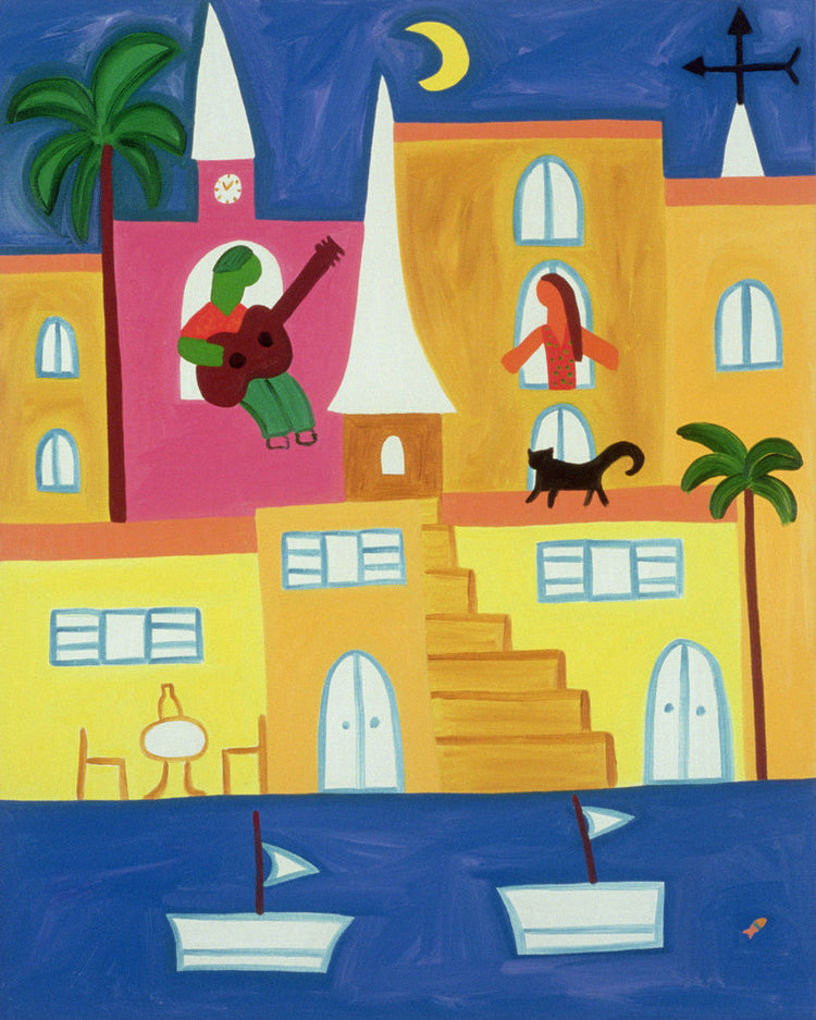 Cristina Rodriguez (b. 1964) is a Colombian artist. Her work reflects her richly varied and multicultural life. Her paintings are each unique, born of a thought, a book, an observation, a feeling, a film or a moment of beauty found in everyday life.